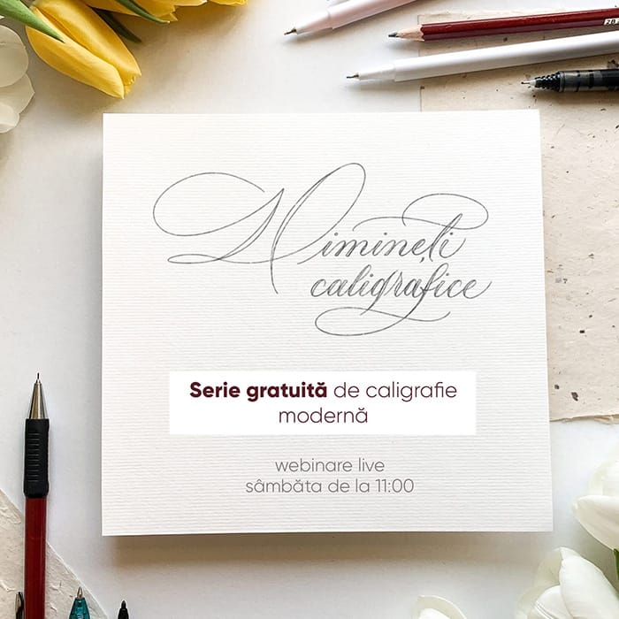 În noiembrie 2020 am lansat Diminețile caligrafice, o serie de webinare gratuite dedicate începătorilor care voiau să învețe caligrafie, dar nu știau de unde să înceapă. Aniversam trei ani de când m-am apucat de caligrafie, de când am intrat în lumea literelor decorative scrise de mână și am vrut să sărbătoresc momentul în comunitate, dându-mi mai departe pasiunea.